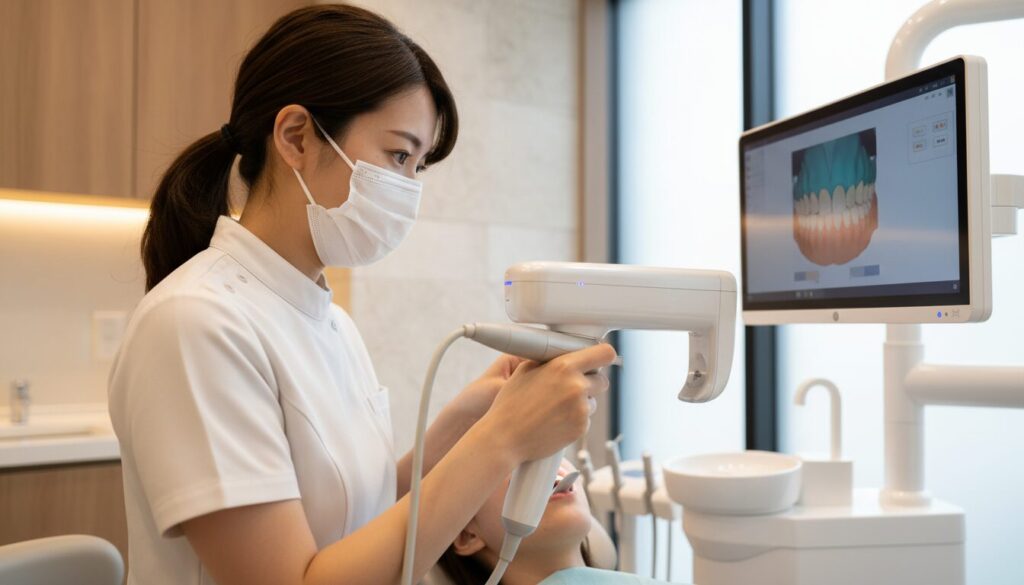 当院では、3Dスキャナーを使用することで、従来の印象材による型取りの不快感を大幅に軽減しています。
