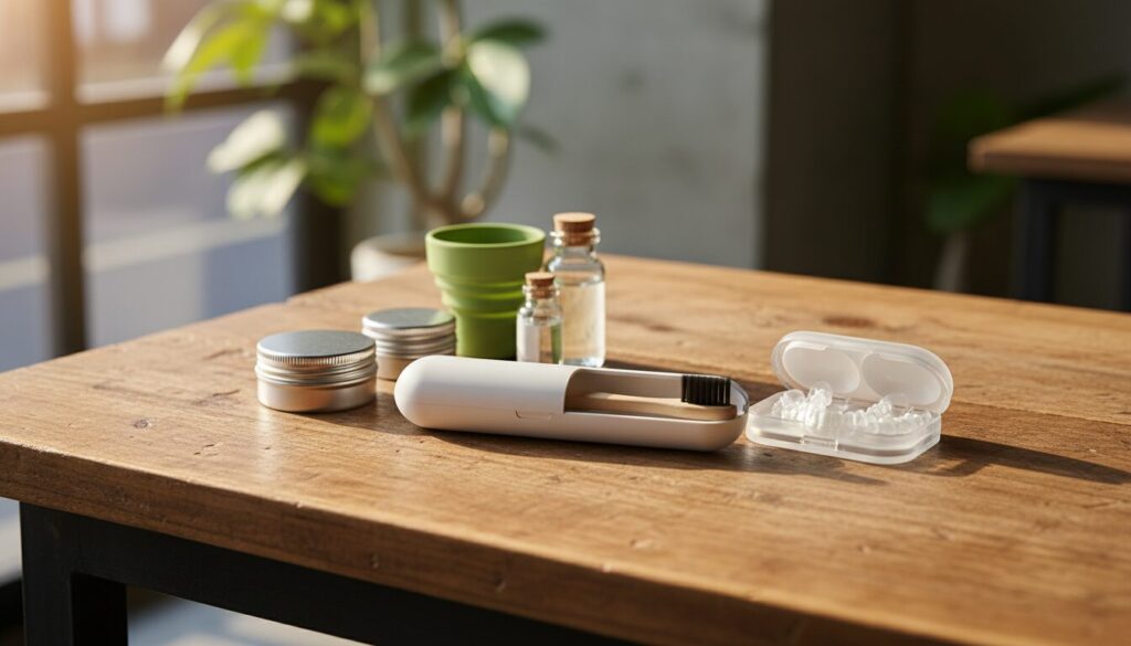 これらを常にバッグに入れておくことで、外食後もスムーズにマウスピースを装着できます。